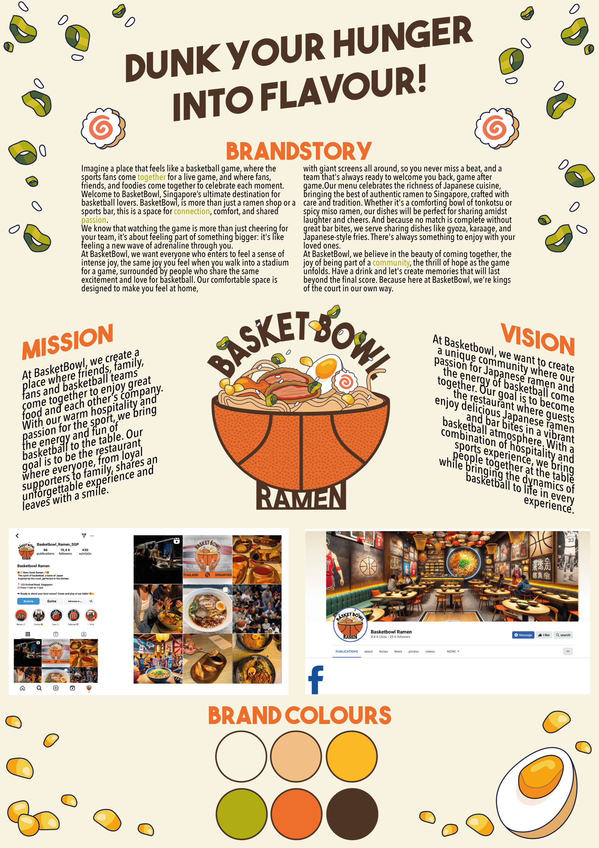 De ondernemer achter Basket bowl had een duidelijke visie: hij wilde een plek creëren waar zijn twee grootste passies samenkomen authentieke Japanse ramen en basketbal. Geen fastfoodketen, maar een toegankelijke, warme plek waar mensen kunnen genieten van een smaakvolle maaltijd terwijl ze samen naar een wedstrijd kijken. Daarnaast wilde hij evenementen organiseren tijdens grote toernooien, aangevuld met traditionele Japanse snacks die perfect samengaan met ramen.