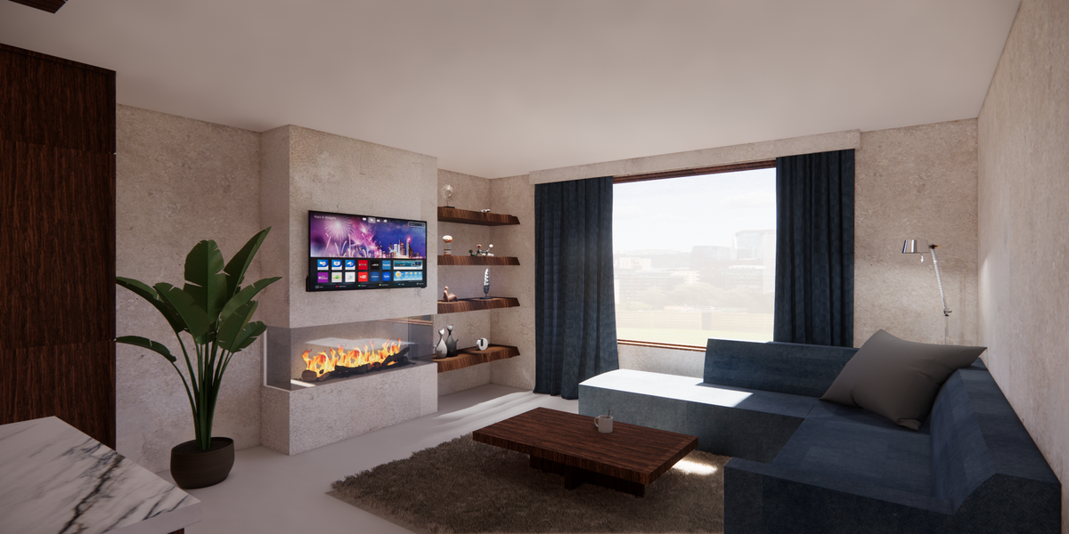 Omdat er uiteraard warmte in het huis moet zijn wordt er veel gebruik gemaakt van hout en stof in het meubilair. De vloer en muren zullen een rustieke look krijgen van beton met lekkere texturen. Ook laat ik de men cave terugkomen met de donkere kleuren waar wel degelijk veel sfeer in kan zitten. Kortom, rustic chic men cave is het concept wat aansluit bij een warme sfeer, maar ook een stoere en strakke uitstraling creëert..
